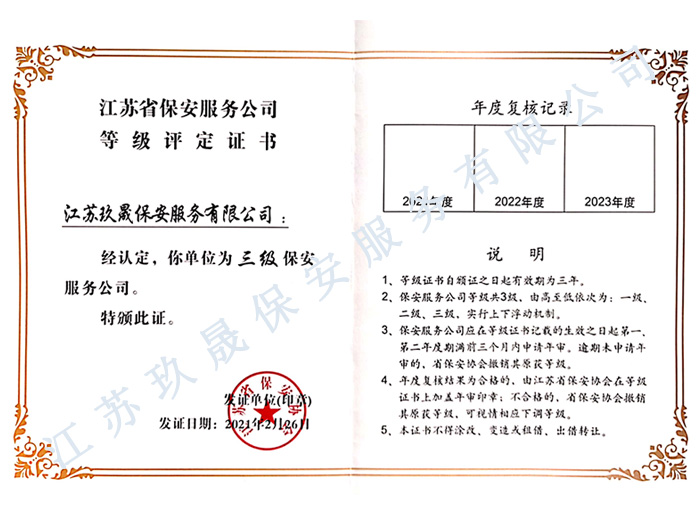 江蘇玖晟保安服務有限公司位于昆山市千燈鎮。注冊資金:5000萬,擁有省公安廳頒發的保安服務許可證的企業,是昆山市保安協會常務理事單位。